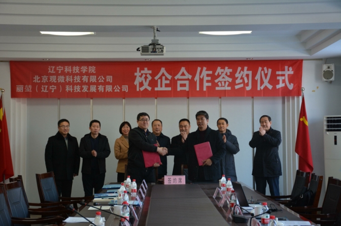 12月2日上午,北京观微科技有限公司辽宁公司总经理郭玉军、副总经理殷继先一行5人莅临我校交流考察,并与我校签署政产学研用校企合作协议。本溪市政协副主席张文辉、教科文卫主任尹晓伟、我校党委书记韩劲松、校长李卫民参加了签约仪式,学校相关职能部门负责人参加了签约仪式。